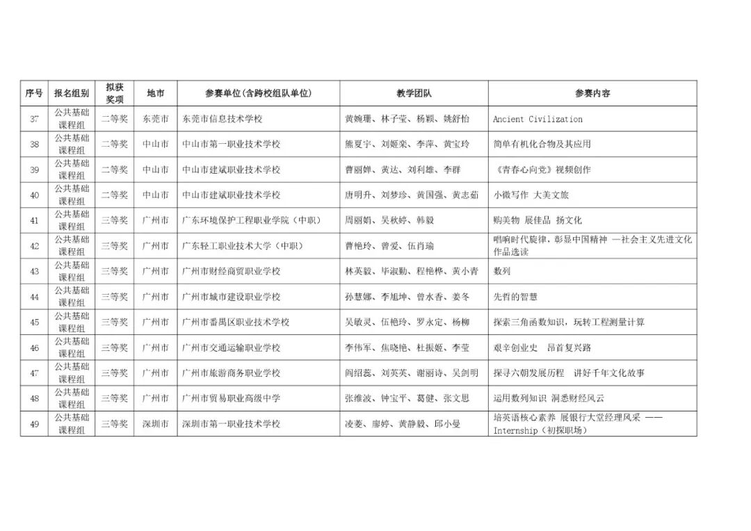 关于2024年广东省职业院校技能大赛教学能力比赛拟获奖名单的公示