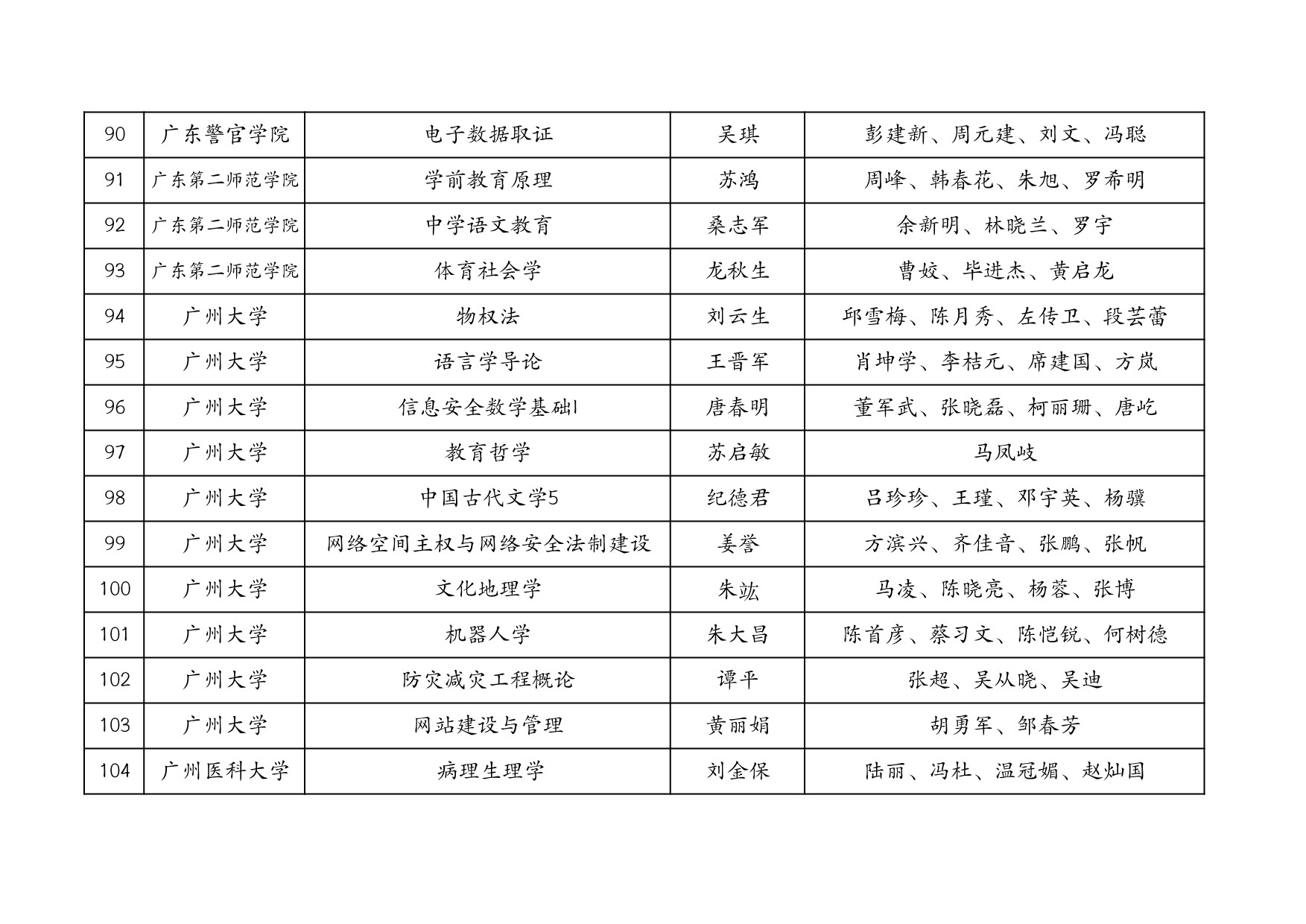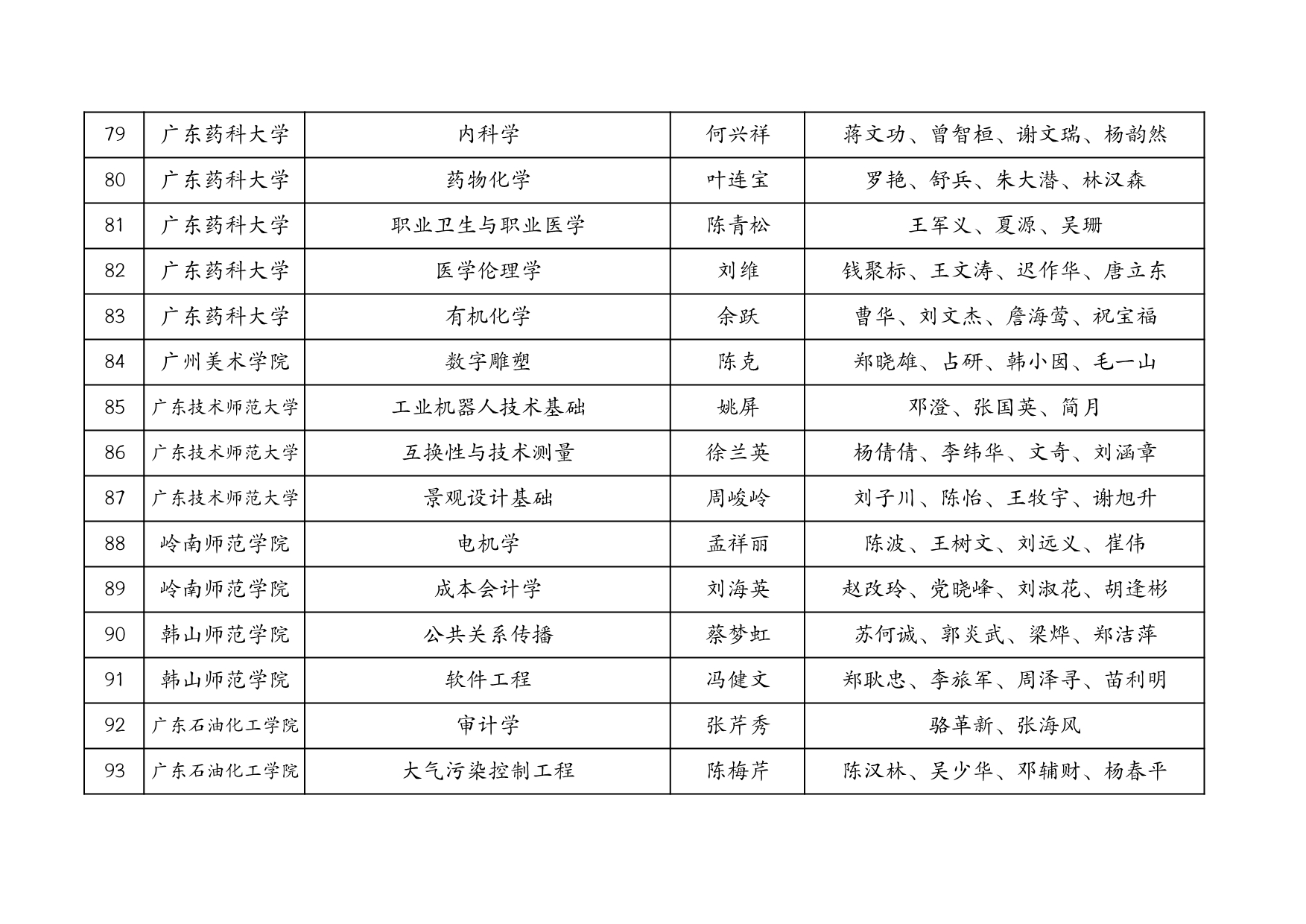 附表:广东省拟推荐第三批国家级一流本科课程汇总表