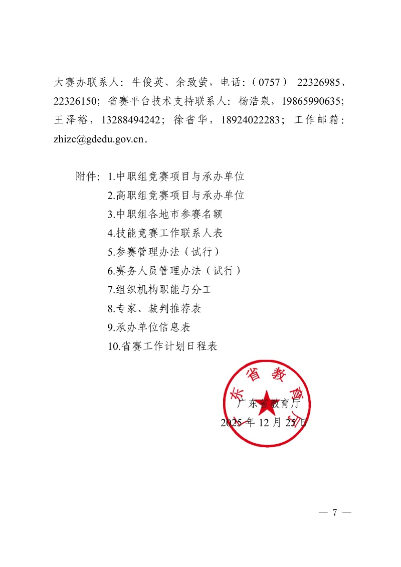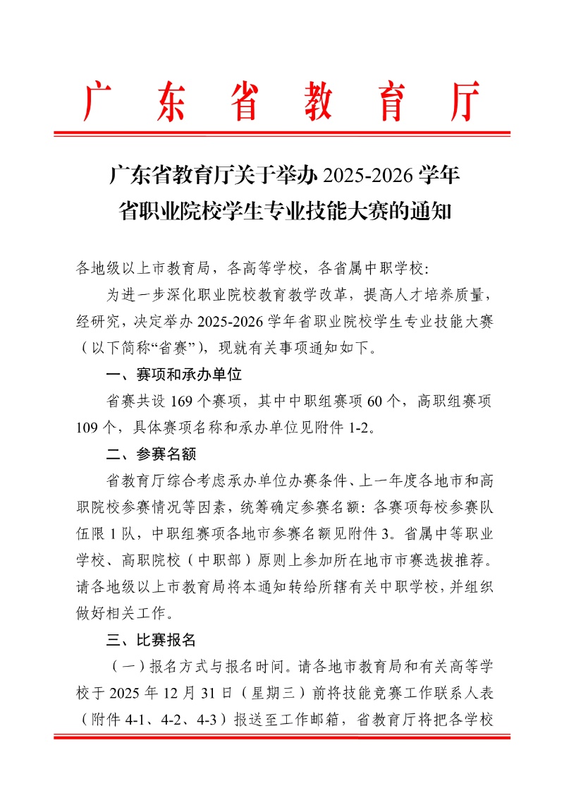 广东省教育厅关于举办2025-2026学年省职业院校学生专业技能大赛的通知
