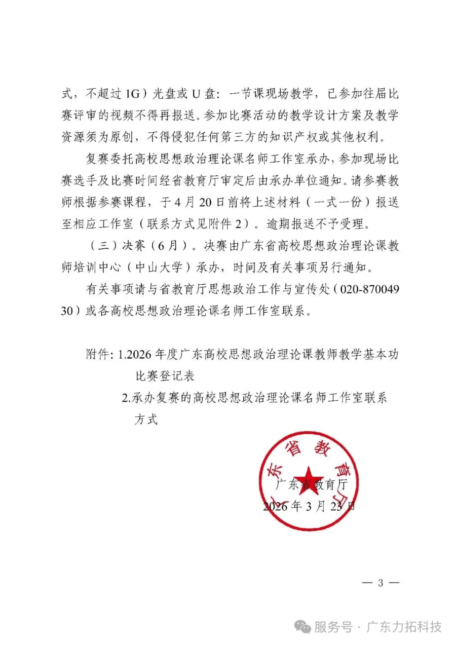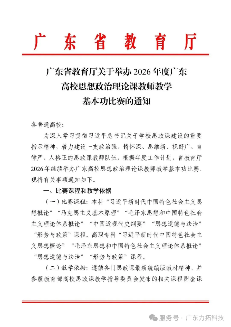广东省教育厅关于举办2026年度广东高校思想政治理论课教师教学基本功比赛的通知